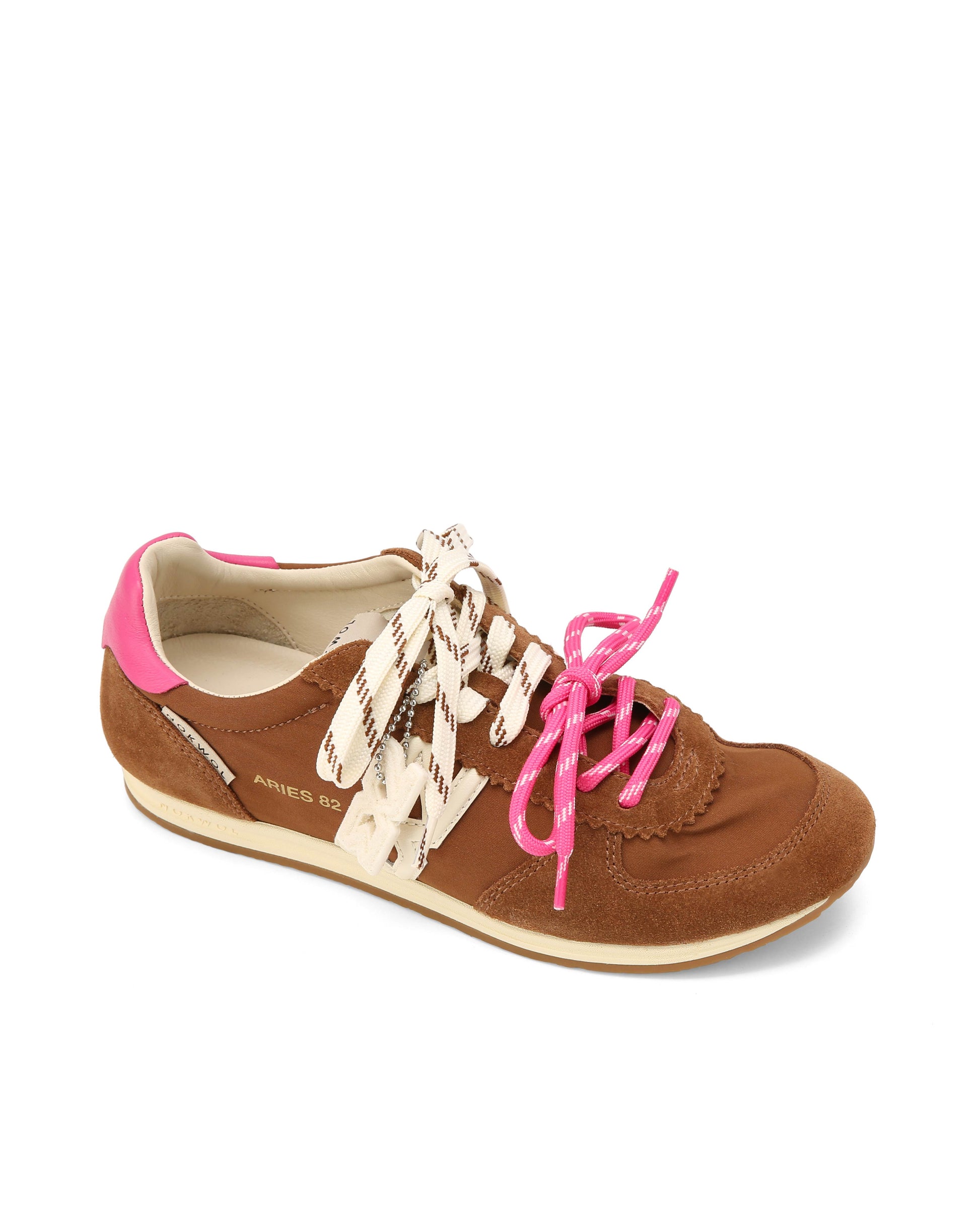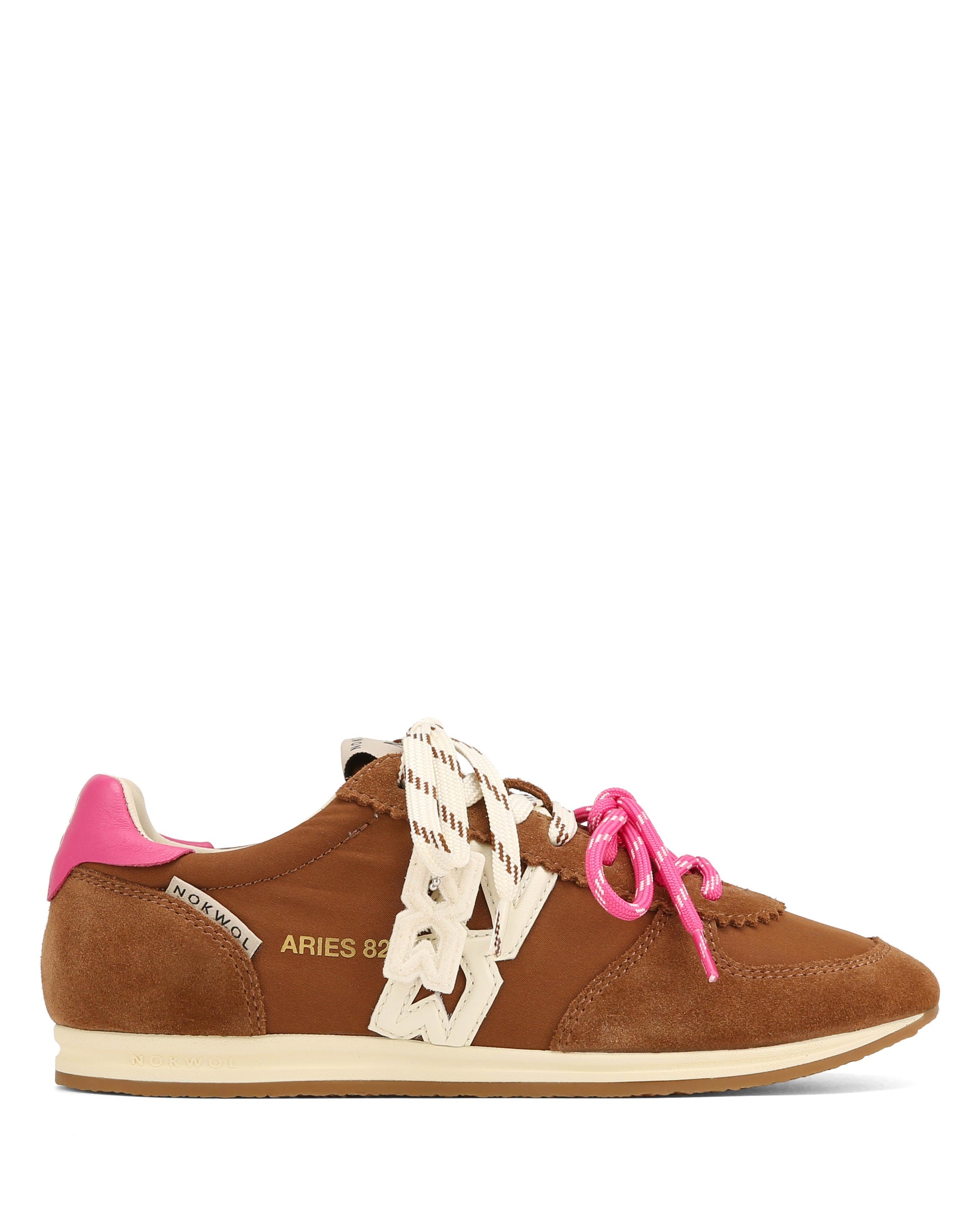 Aries 82 pulls straight from the archives. Built in a mix of soft vintage nylon, suede, and leather, it has that old-school feel with a modern refresh. The double-lace detail and Nokwol hanging charm add a playful nod to styling, while the leather footbed and rubber outsole keep it grounded for everyday wear. Designed to stand out without trying too hard, Aries 82 brings throwback energy in fresh, contrast-heavy colourways.
