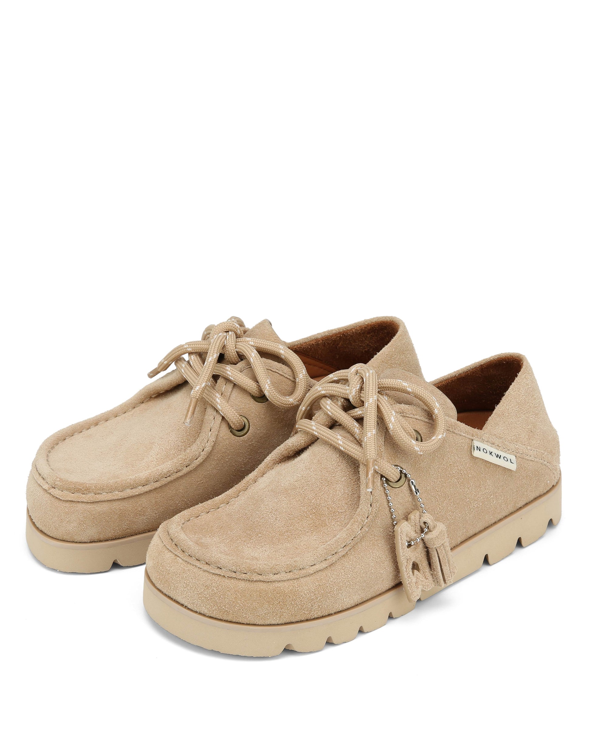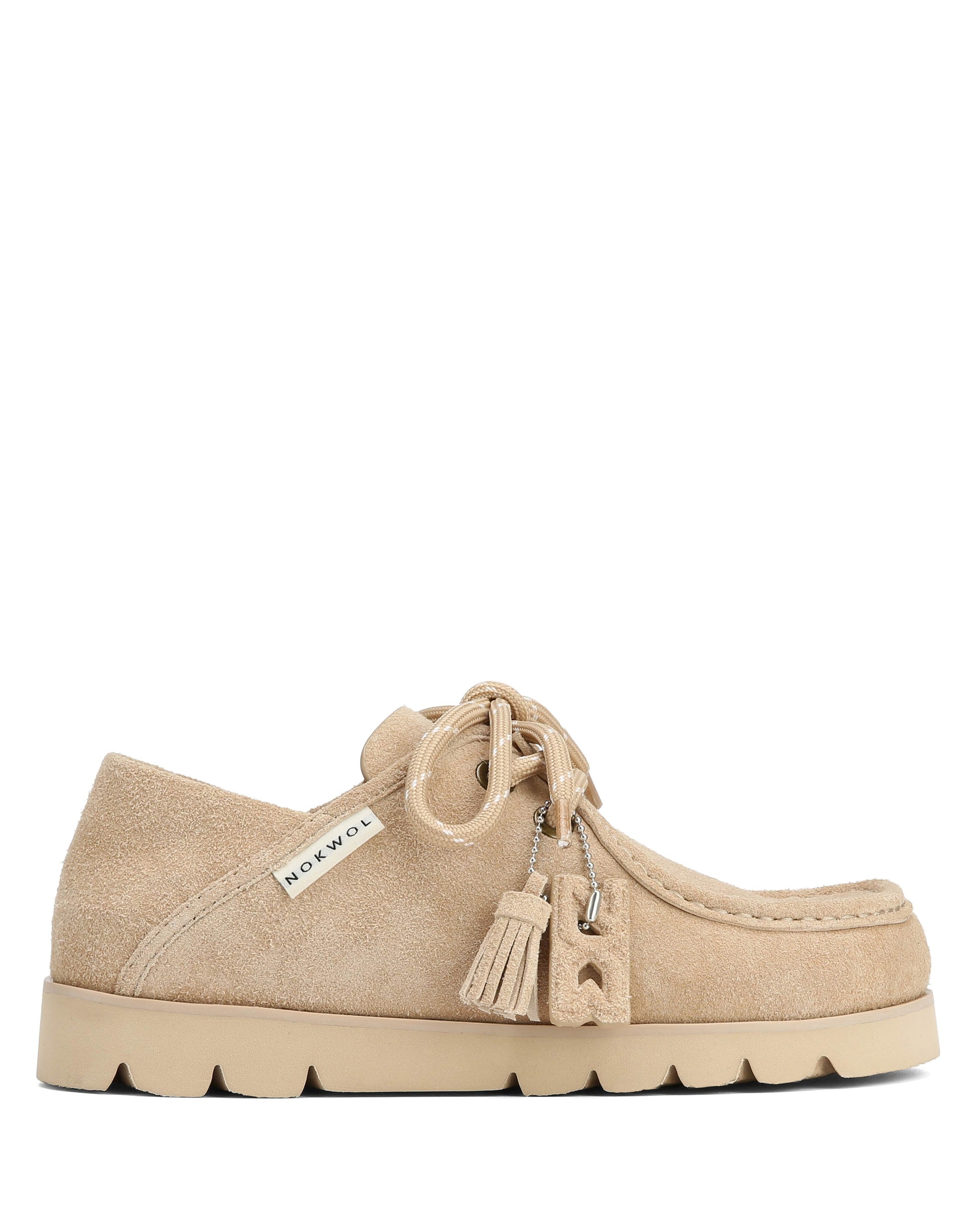 CLOVA is your go-to for cool-weather ease with a refined, rustic edge. Crafted from premium textured suede, this moccasin-inspired silhouette features bold stitching, decorative tassels, and a classic lace-up front for a heritage feel with a modern twist. A soft leather lining at the collar enhances comfort, while the lightweight rubber outsole delivers traction and flexibility for everyday wear. Finished with signature Nokwol branding and tactile detailing, CLOVA brings elevated character to relaxed layering-perfect for laid-back days.
