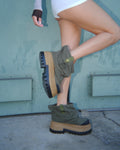 Introducing Dream, the chunky boot of the season with an asymmetric toe shape, designed for those who appreciate bold fashion statements. This boot features a wide leg fit, cute short cut leg, complemented by a distinctive Wolfe head ball charm for added flair. It also includes new rubber toe and heel pieces, combining durability with a modern aesthetic. Each pair has a hand crafted dirty finish. Perfect for trendsetters seeking both edge and elegance, this boot is a must-have for any fashion-forward wardrobe.