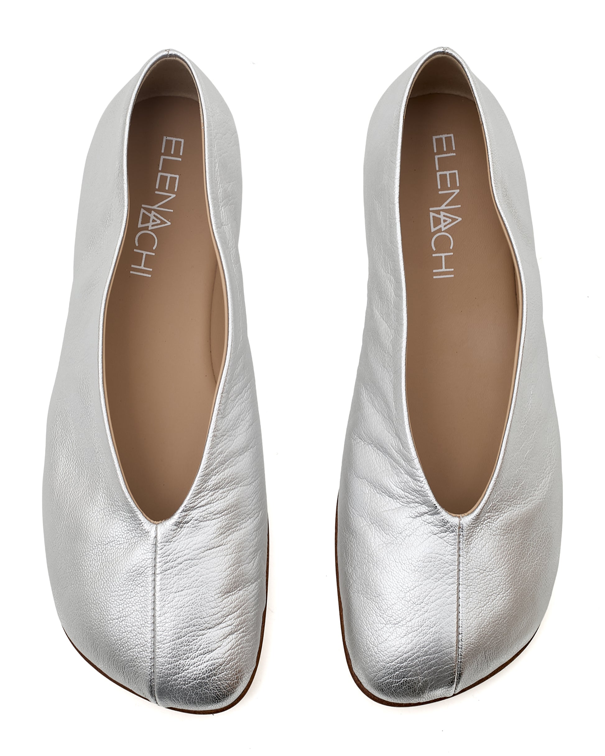 The E4621 Astro flat features a metallic leather upper, and finished with a subtle square toe. Made in Italy from quality materials.