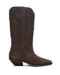 The Highland Boot is a luxurious reinterpretation of the iconic Western silhouette, seamlessly blending rugged heritage with high-fashion sophistication. Crafted from sumptuous suede and detailed with exquisite stitch-work, this boot is designed to be the defining piece of your contemporary wardrobe.
