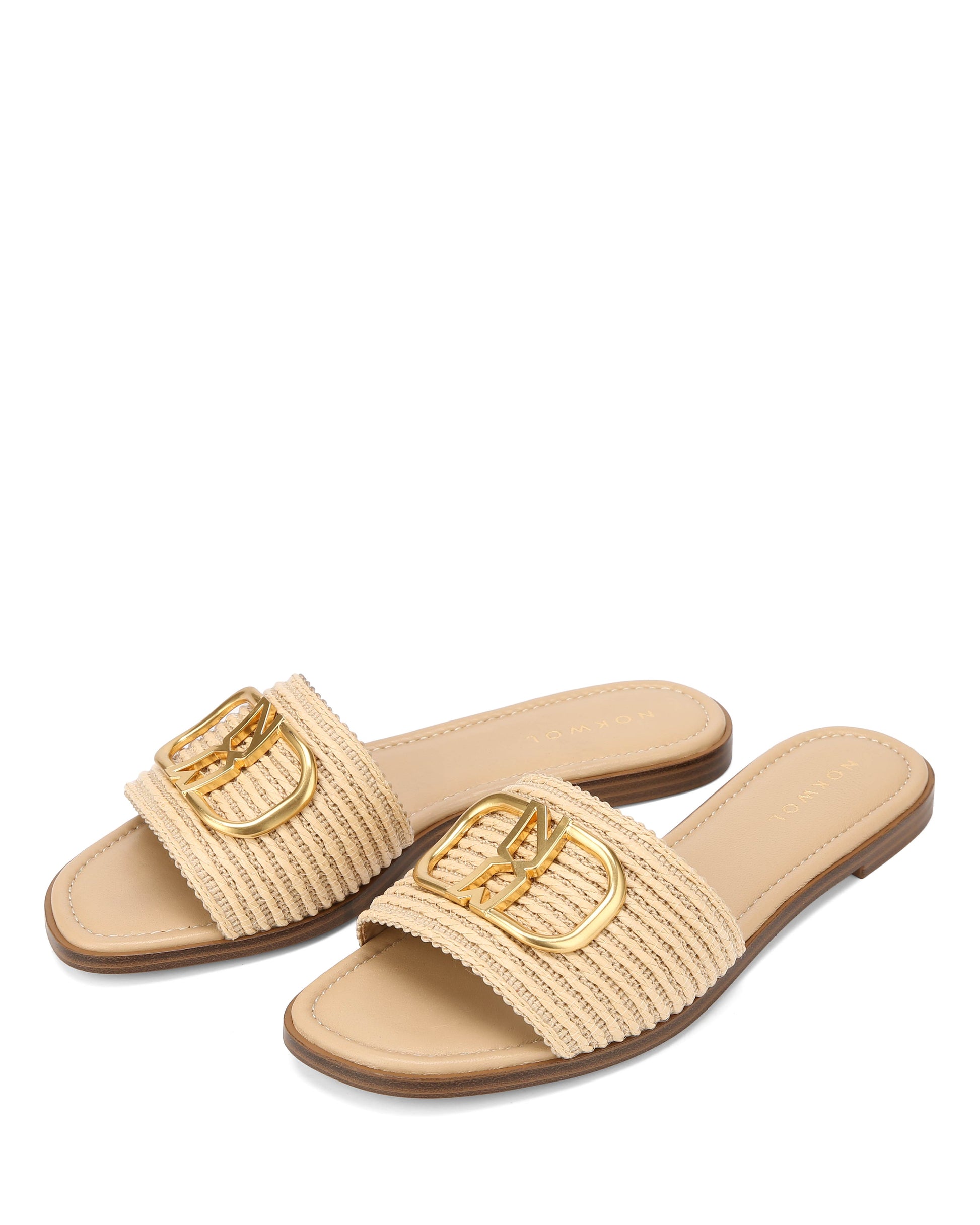 Your summer staple, redefined. The Kali features a breezy raffia upper, luxe leather lining, insole, and a lightweight resin sole built for all-day comfort. Finished with a brushed gold Nokwol trim for a hint of shine. Available in Natural and Black — easy, elevated, and made to move.