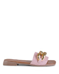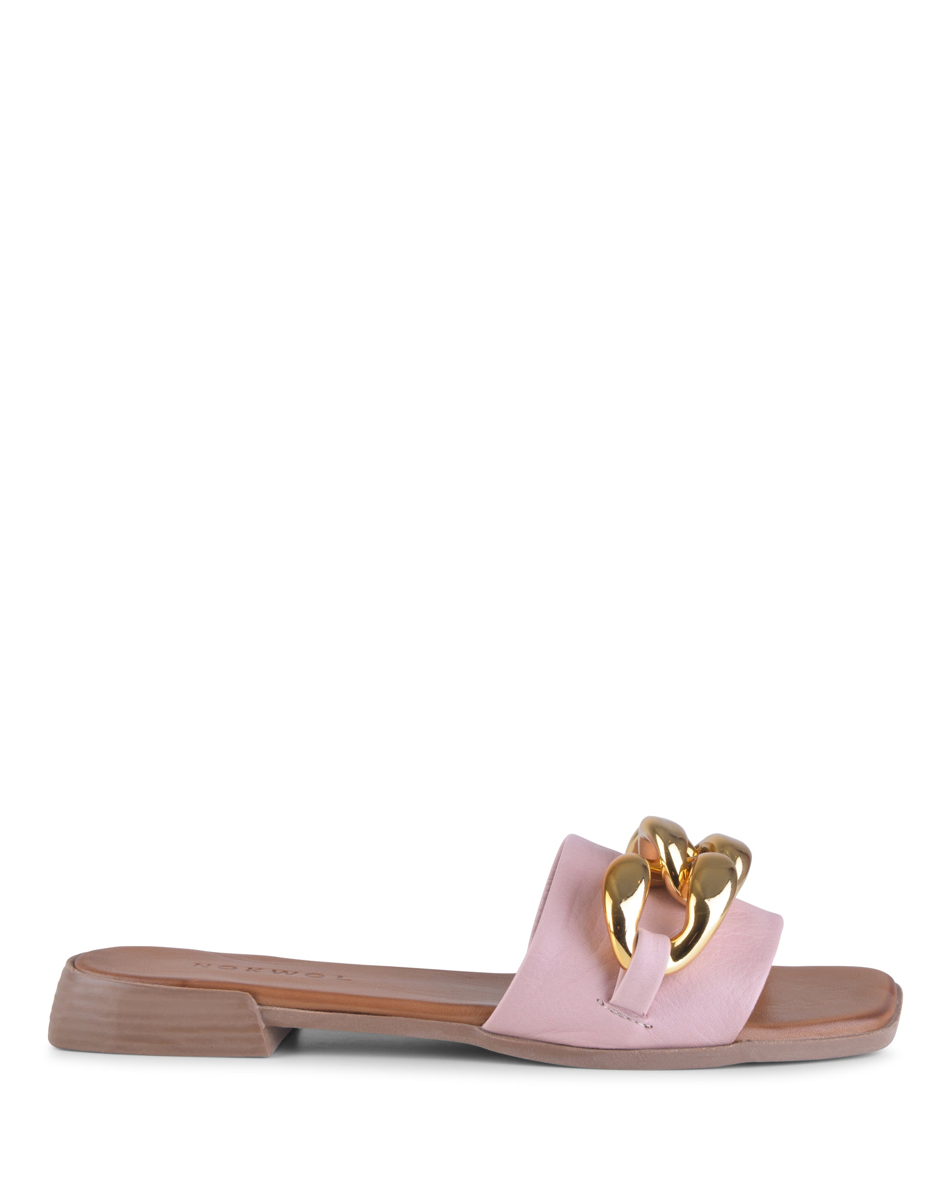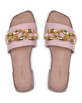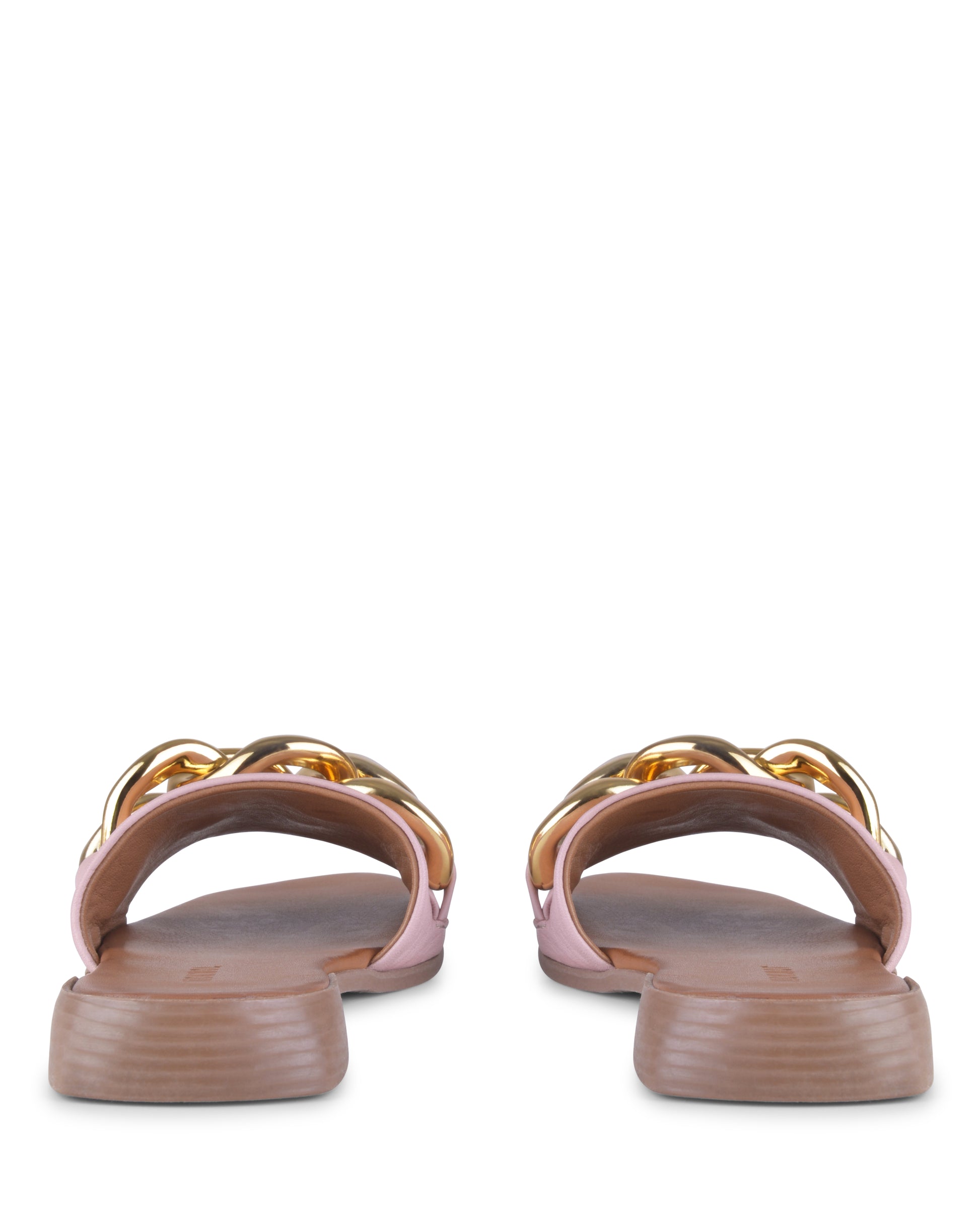 Constructed on a mini stacked block heel, mule style Kate is adorned with an oversized chain over the vamp strap. This style encapsulates elegance and fashion and will ensure you are walking through summer in style.