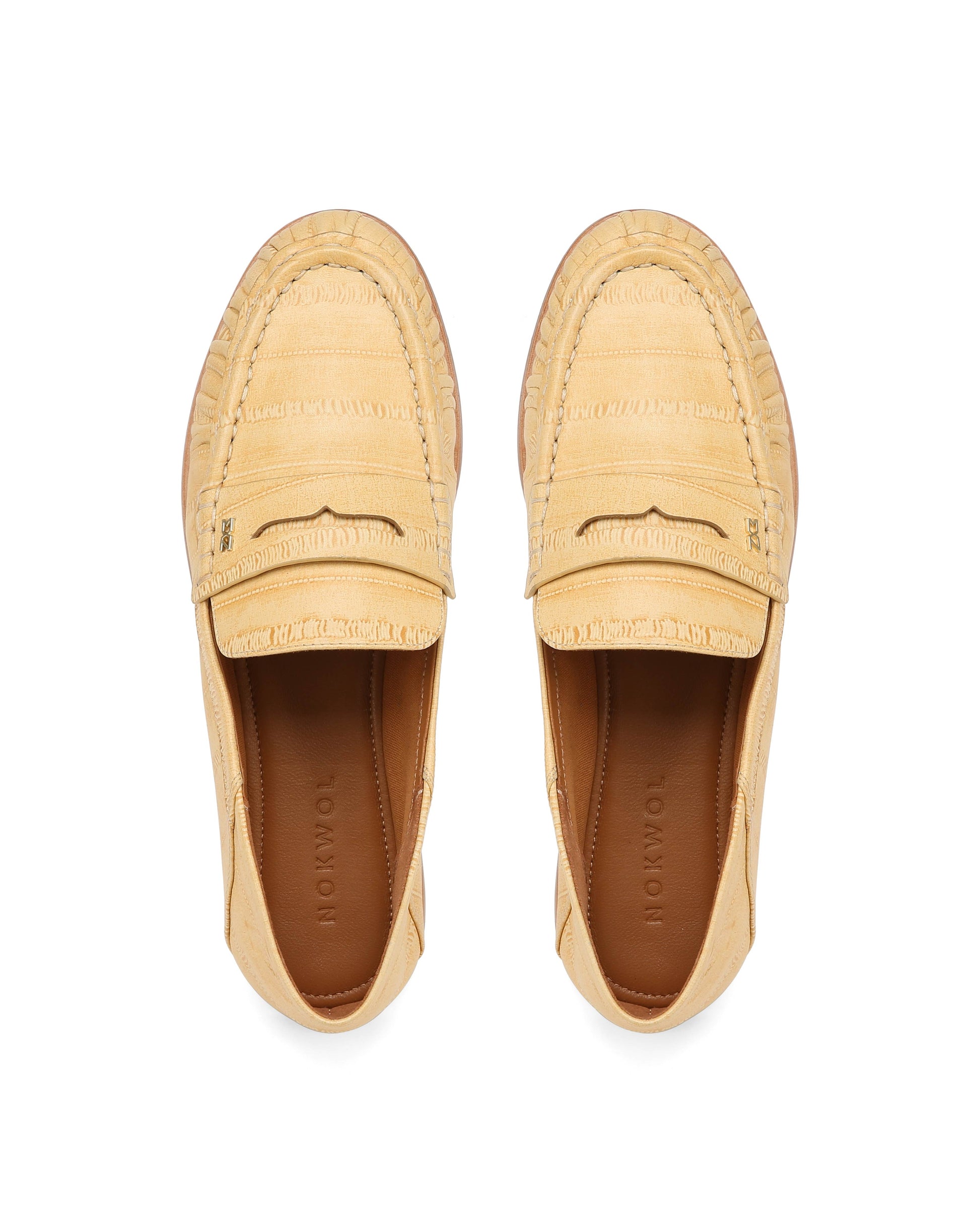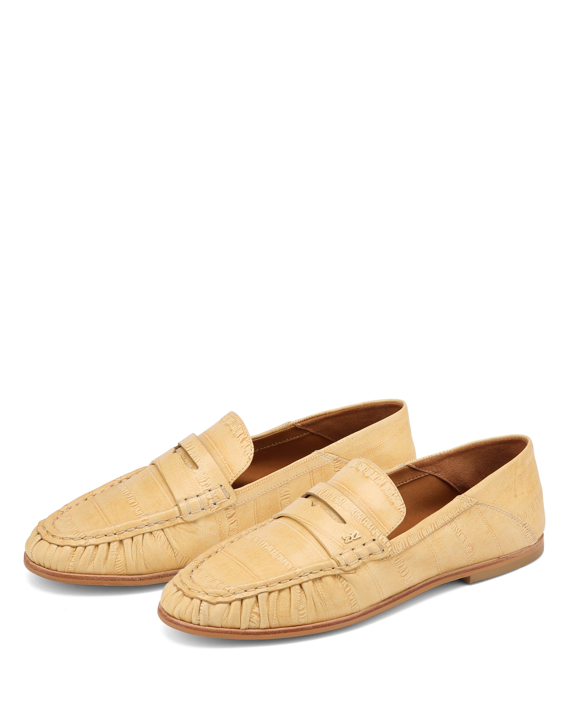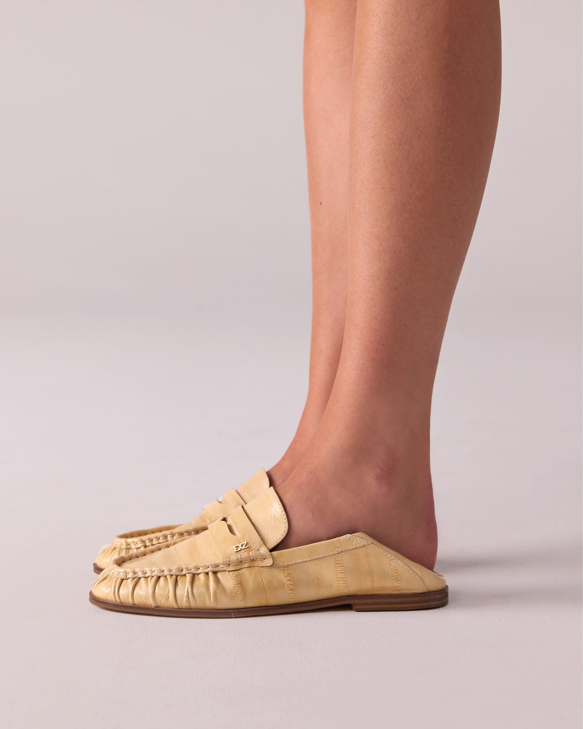The MICA Deconstructed Penny Loafer blends elegance and comfort with buttery eel-embossed leathers, suede, and a leather-textile lining. Designed for versatility, it can be worn traditionally or as a slipper with a folded counter. Available in five timeless shades, it features a padded insole, durable resin outsole, and a signature stainless steel Nokwol pin, making it a refined yet adaptable choice for any occasion.