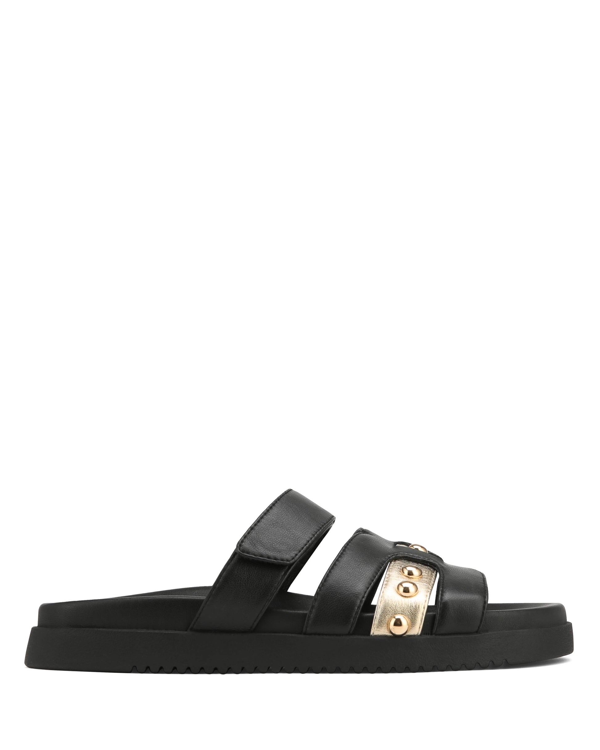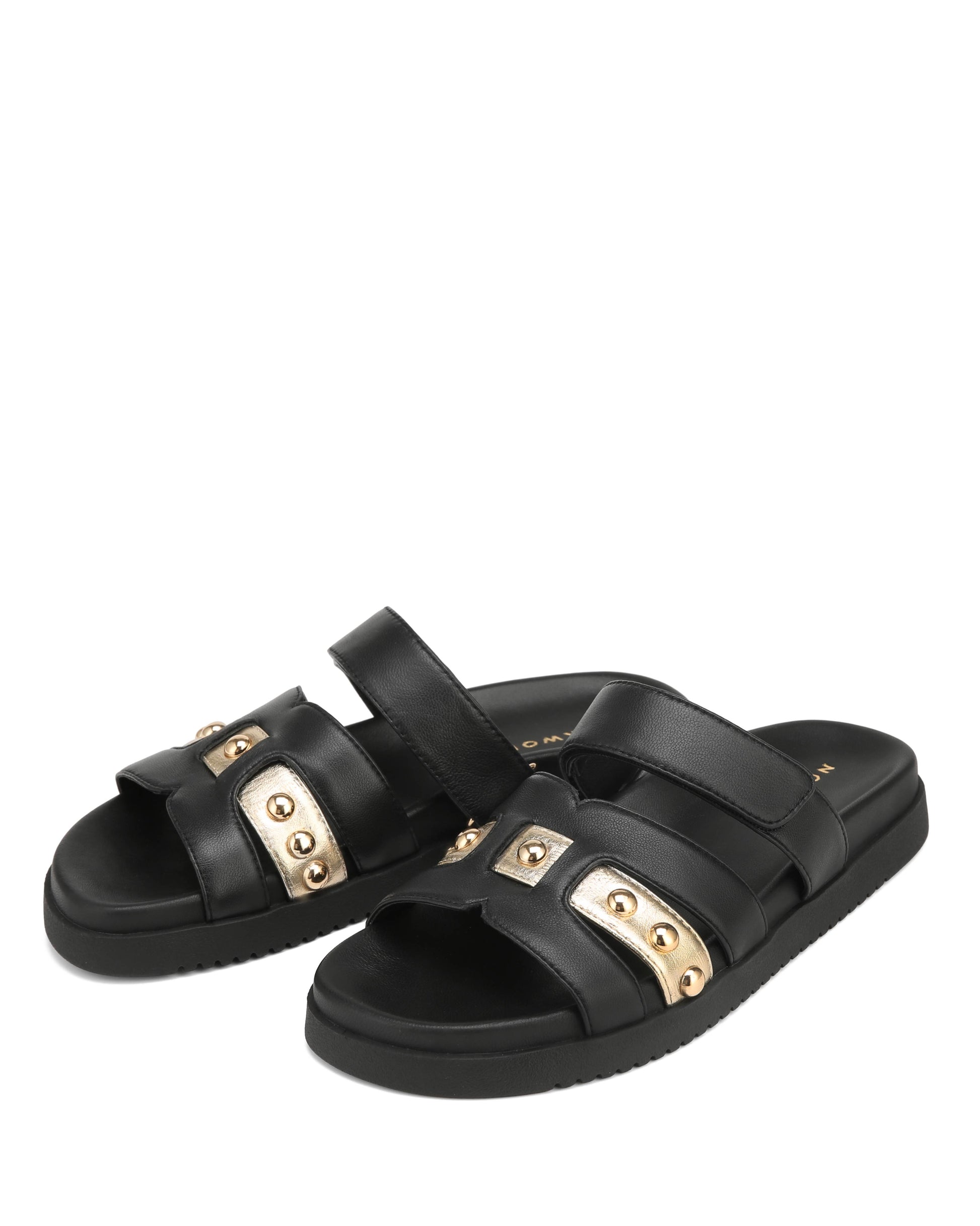 Introducing the Minnie sandals: a blend of elegance and comfort for your summer adventures. Crafted with a full leather upper and luxurious leather lining and footbed, they promise a plush feel with every step. The stud-embellished upper adds a hint of glamour, while the Velcro strap ensures a customised fit. Finished with a lightweight rubber outsole, they're durable for all-day wear. Available in black, ecru, and tan, they effortlessly complement any outfit. From beach strolls to evening dinners, the Minnie sandals are your go-to choice for summer chic.