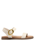 The ADORE flat sandal combines refined craftsmanship with undeniable style. The raffia and leather upper creates a chic, textured look that’s both versatile and eye-catching. With a leather lining and leather-wrapped cushioned insole, the sandal offers long-lasting comfort, while the adjustable buckle ankle straps ensure a secure and custom fit. A brushed gold asymmetric buckle adds an elegant touch of detail, making this piece feel both modern and luxurious. Designed with a lightweight resin outsole for easy wear and durability, the ADORE sandal is available in three timeless colourways—natural raffia, bone, and tan leather—perfect for elevating any summer ensemble.