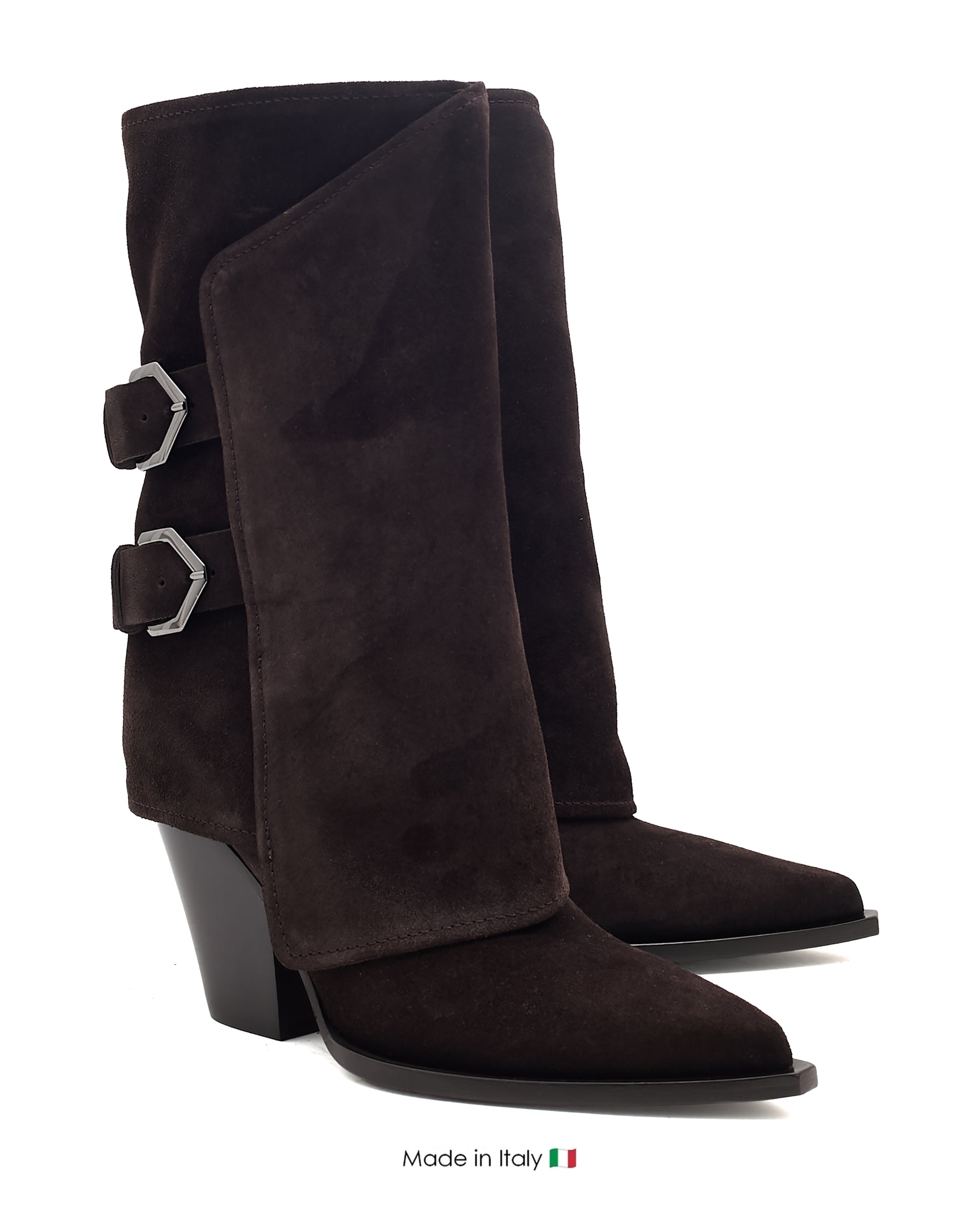- Distinctive design details: Pointed toe with subtle distressing and dual buckled straps on the shaft for modern Western-inspired flair.