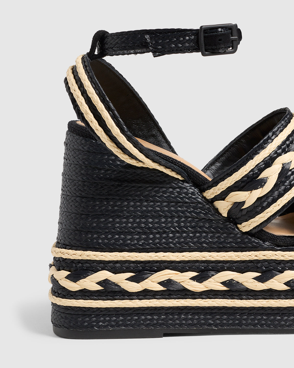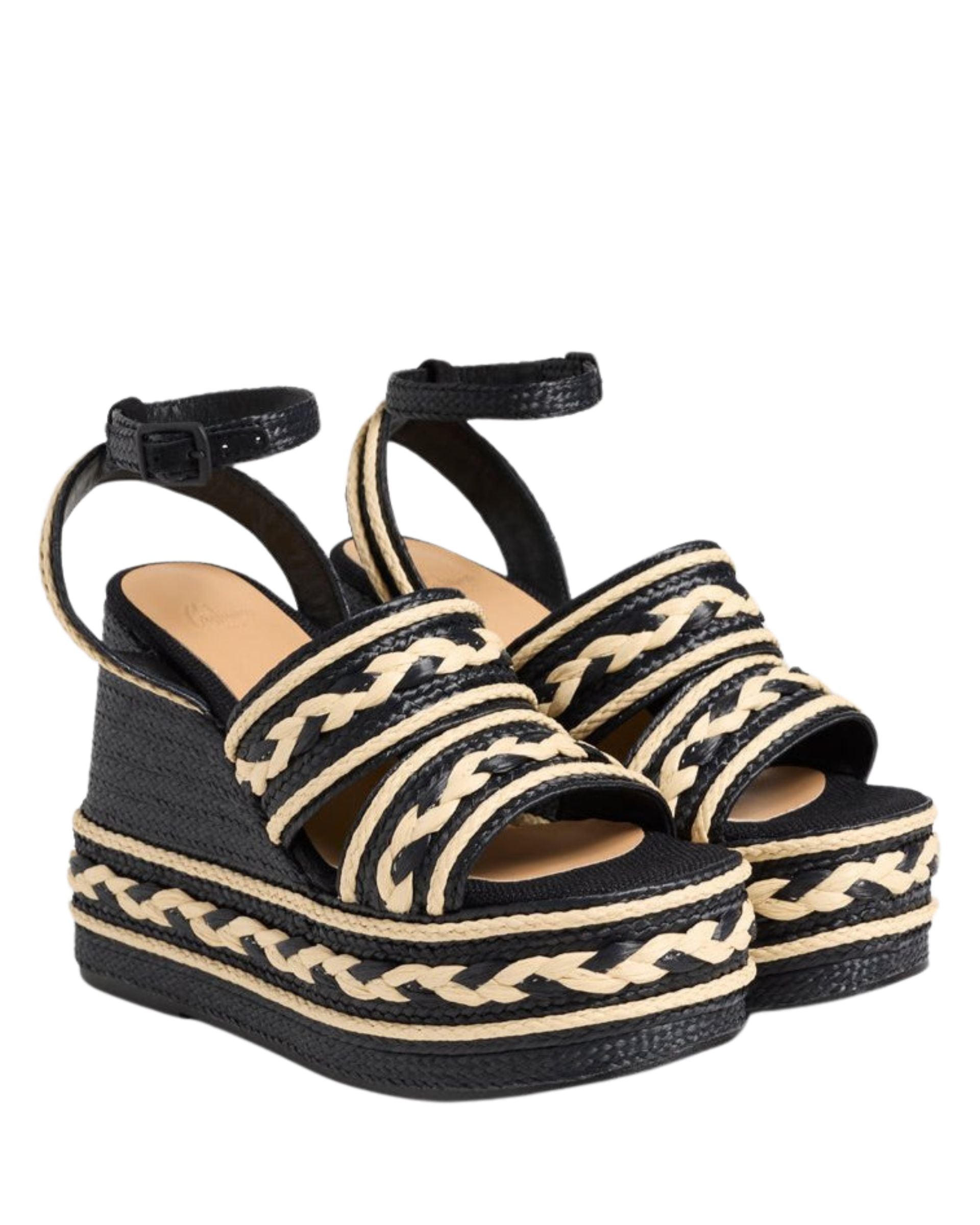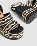 The Fermina sandals feature a wonderful two-tone effect thanks to the handcrafted details generated by the raffia in their design. Made in Spain from raffia, the Fermina sandals have a square open toe, a side strap closure with a metal buckle, an opening at the back of the heel and a height of 13cm.