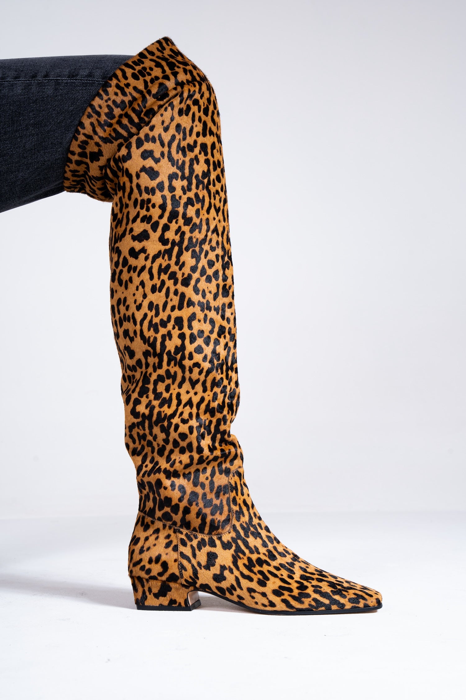 Command attention this winter with FLY, the ultimate over-the-knee boots that redefine bold, statement-making style. Meticulously crafted from premium leather, rich suede, and striking leopard pony hair, these exclusive Nokwol boots blend luxury with attitude. A soft leather and textile lining, cushioned footbed, and a sleek resin outsole with a perfect 30mm lift ensure unparalleled comfort and durability. Available in six captivating colourways, FLY is the “It” boot of the season—effortlessly pairing with shorts, skirts, or an oversized coat to create head-turning looks that radiate confidence and elevate your winter wardrobe.