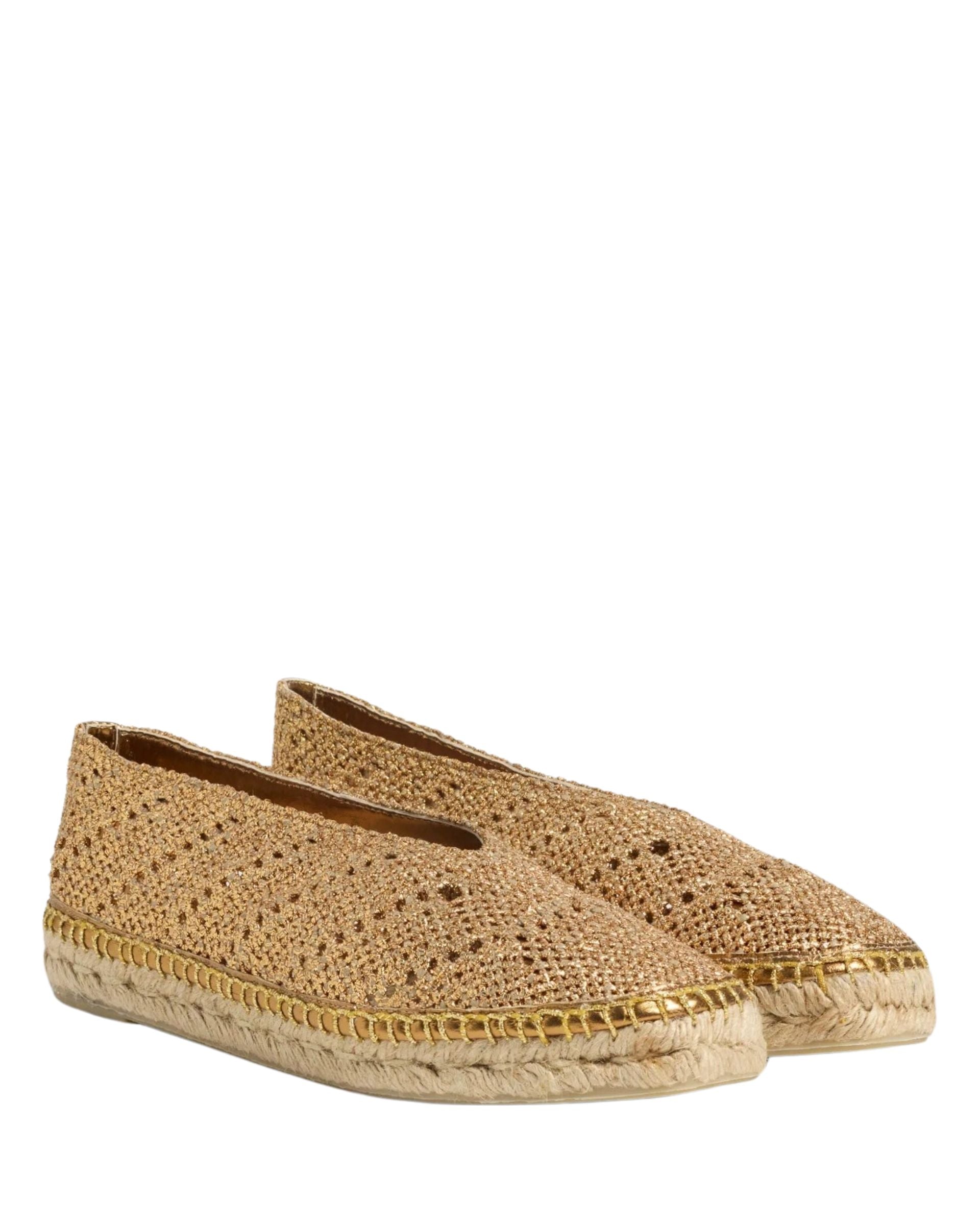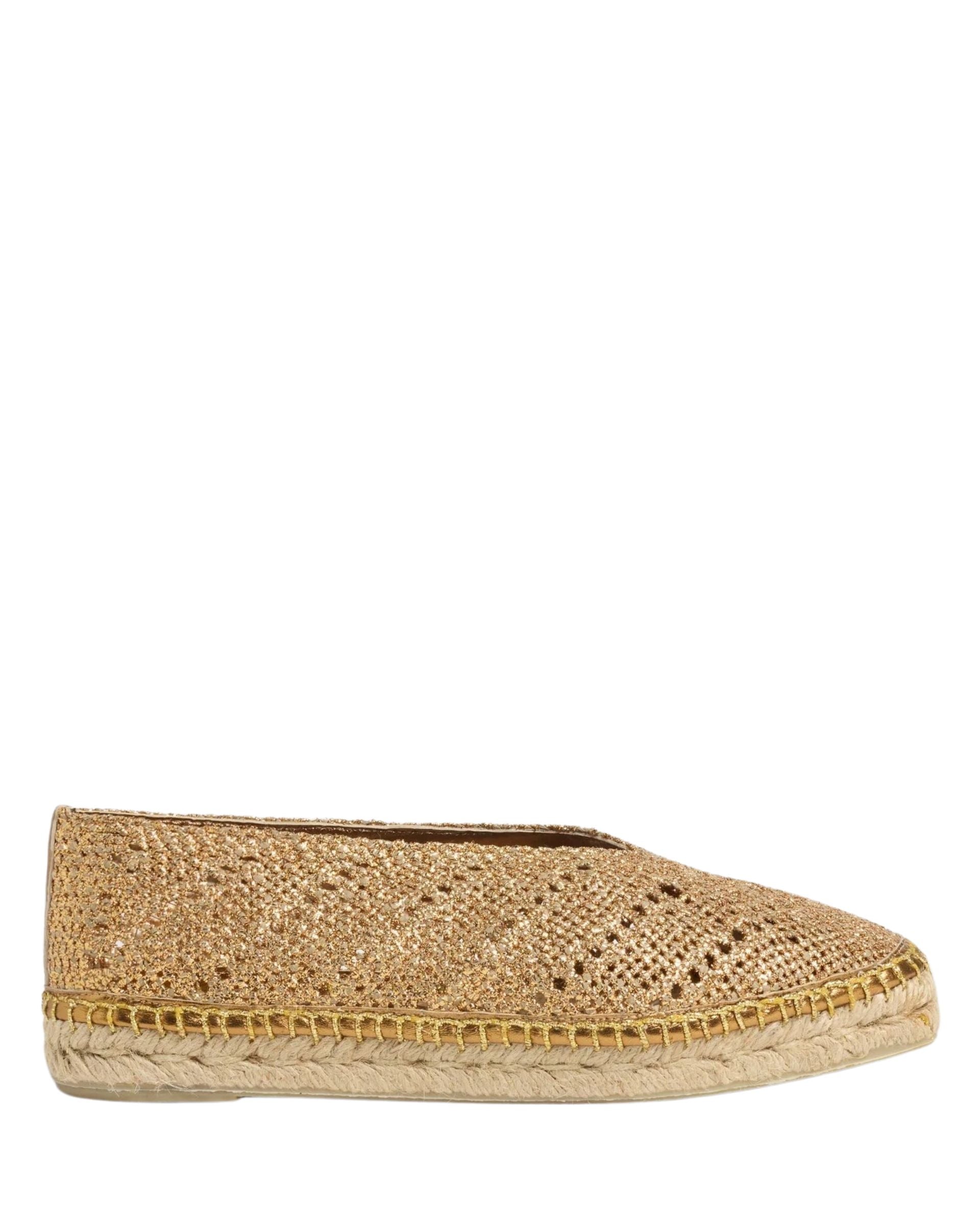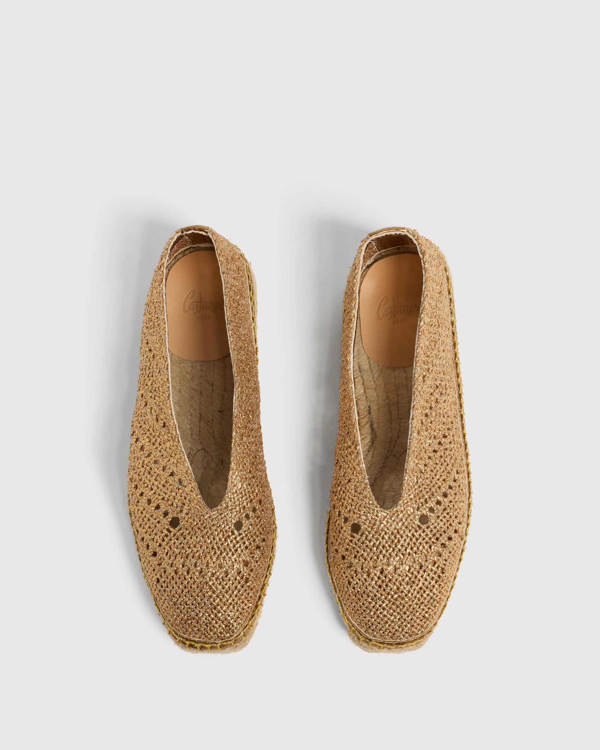 BALLERINA FLATS WITH METALLIC PUNCHED LEATHER FOR A FRESH, TRENDY LOOK. HAND-MADE IN SPAIN, THE KIM ESPADRILLES FEATURE A SQUARE CLOSED TOE AND FLAT VULCANISED-RUBBER SOLE.