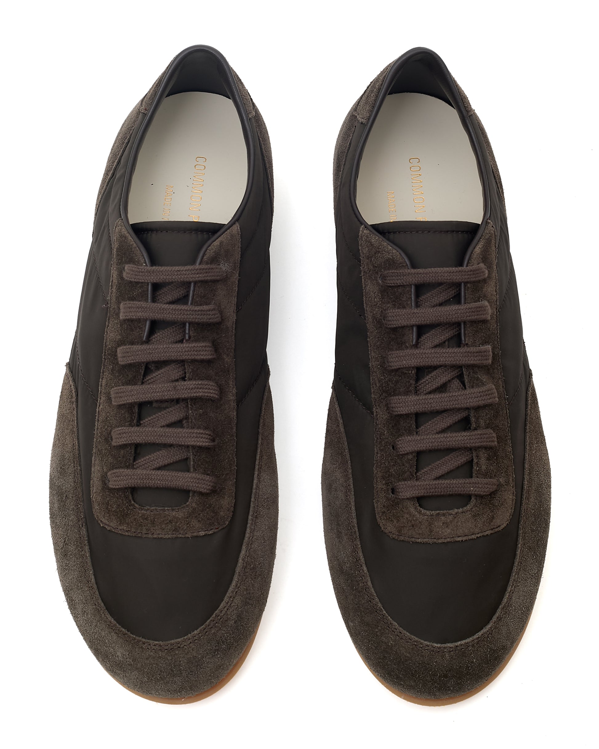 Understated, versatile, and expertly constructed. These brown suede and nylon runners feature the signature Common Projects gold serial number and a classic lace-up front. Made in Italy for a premium fit and finish.
