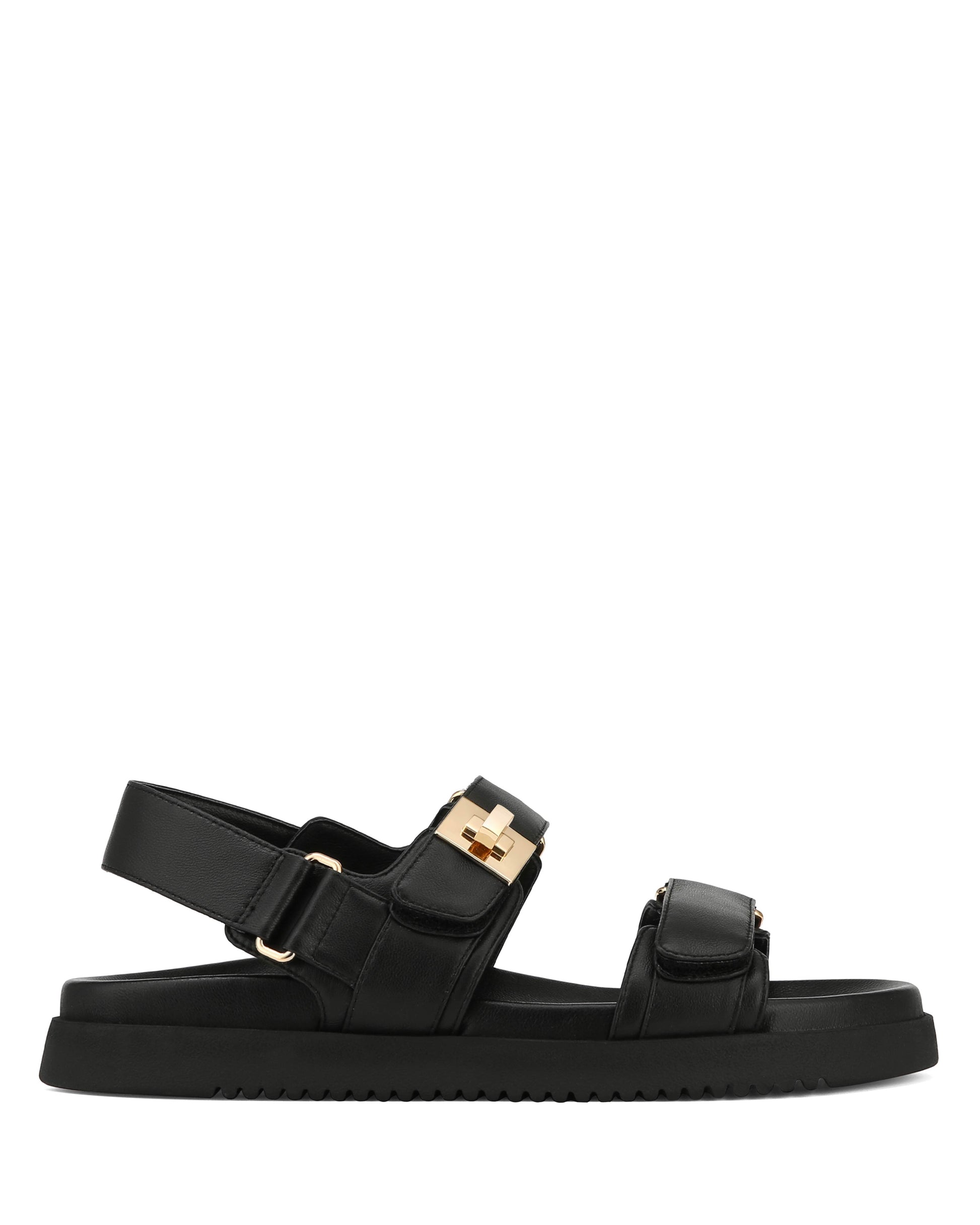 Elevating your style with sophistication, these sandals feature elegant gold-tone hardware for a touch of glamour. Available in three stunning colourways—timeless black, chic bone, and glamorous gold—they effortlessly complement any outfit, making them a versatile wardrobe staple for the season. Whether you're exploring the city streets or lounging by the beach, step out in style and comfort with these must-have MONAS.