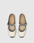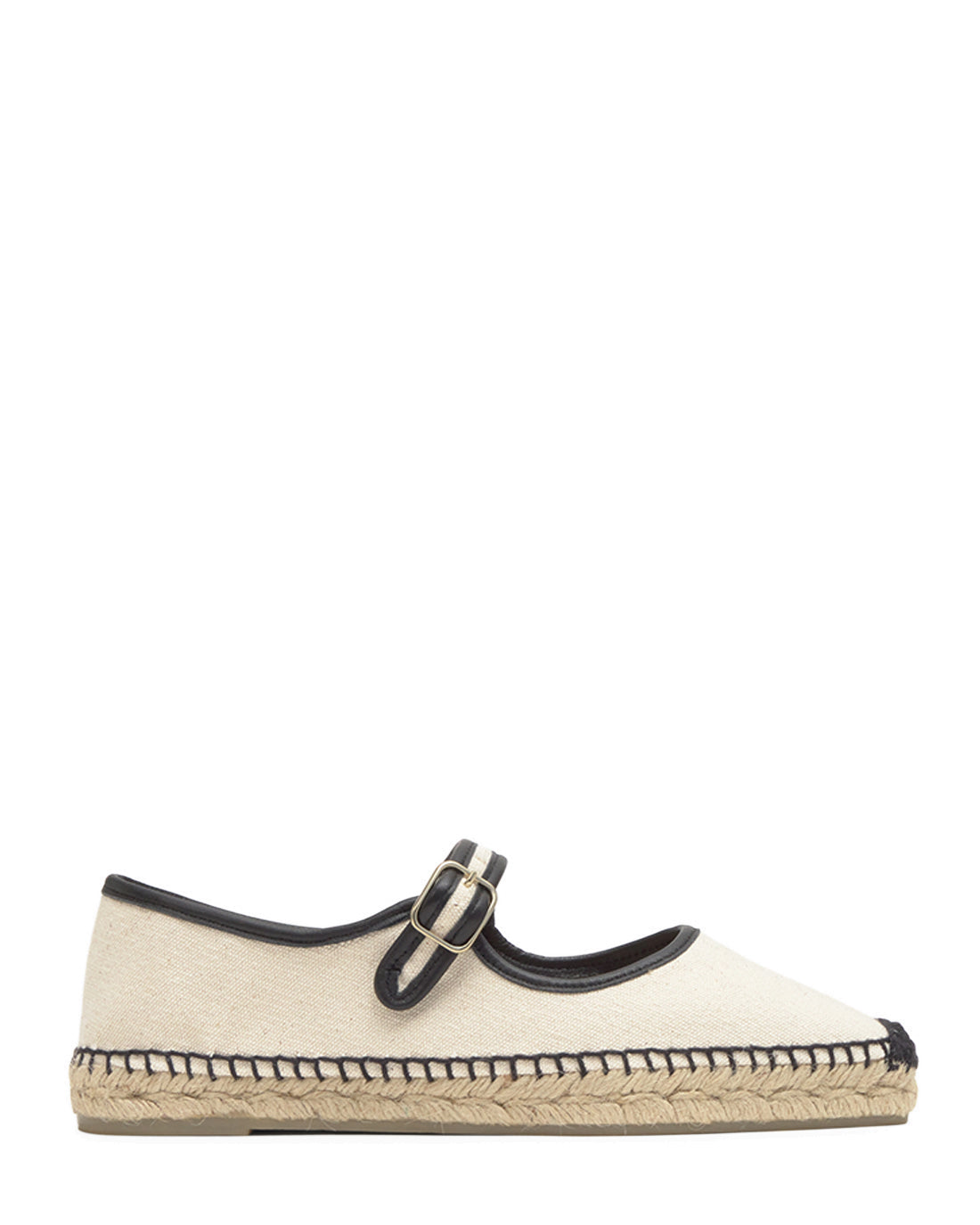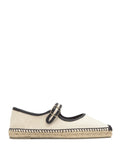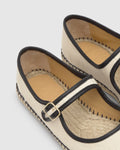 Padua mary-jane style flat espadrille in washed organic cotton with buckle closure and jute sole.